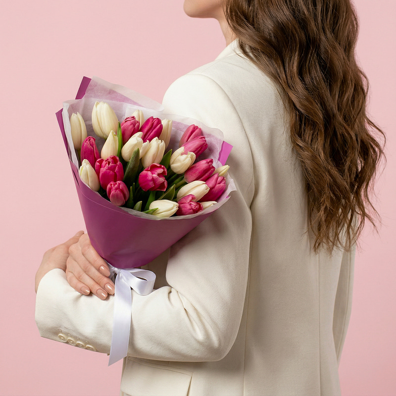 Микс тюльпанов из двух цветов в упаковке. Порадуйте близких свежими, хрустящими тюльпанами!