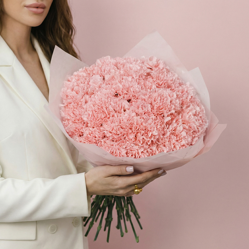 Нежный букет из диантусов премиального качества. В букете 35 розовых диантуса. Прекрасный букет для чувственных девушек и милых дам. Романтично, лаконично, со вкусом!