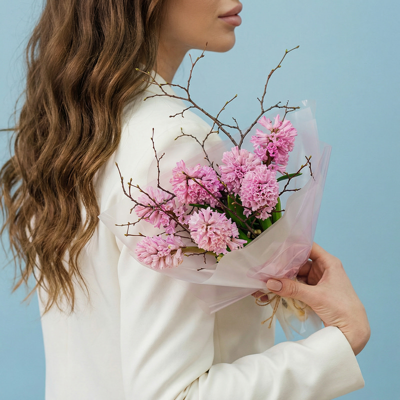 Весенний букет с сезонными нежными ароматными гиацинтами. Эти цветы прекрасно подойдут как подарок для близкого, так и для коллег. Гиацинты наполнят помещение ароматом весны. Успейте порадовать дорогих вам людей нежностью.